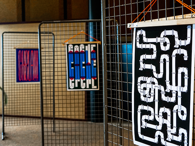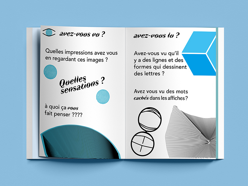 Double Lecture expose mes affiches et invite à découvrir de manière ludique les notions de graphisme, les liens entre le lisible et le visible.