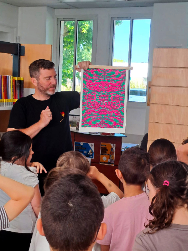 Afin de faire médiation, l'exposition a donné naissance à kit pédagogoque qui a pis la forme d'un livret de jeu afin d'initier les spectateur·ices aux processus de création des affiches exposées. L'édition propose une sensibilisation à ma pratique, à celle de la sérigraphie. Il amène à identifier le vocabulaire graphique des affiches de manière ludique