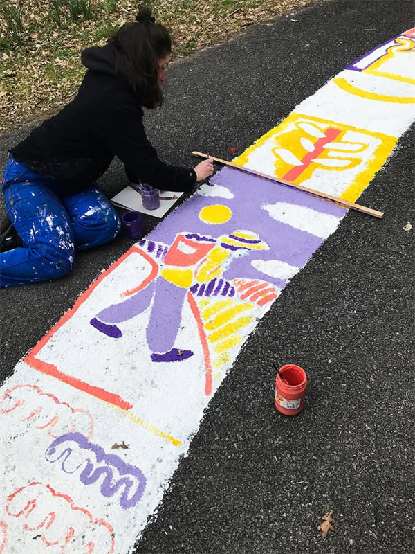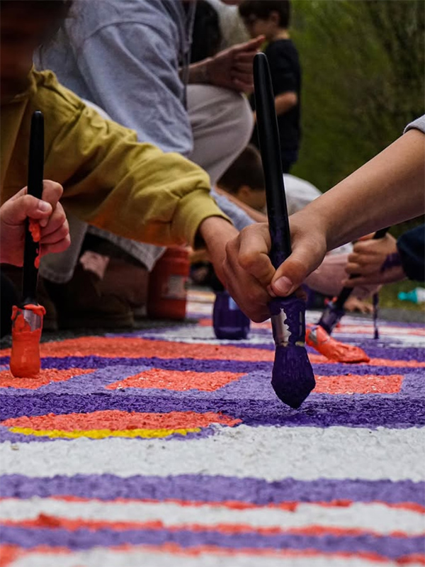 Grandes et petites mains ont participé à peindre ce grand jeu de l'oie traversant la forêt du Taillan-Médoc.